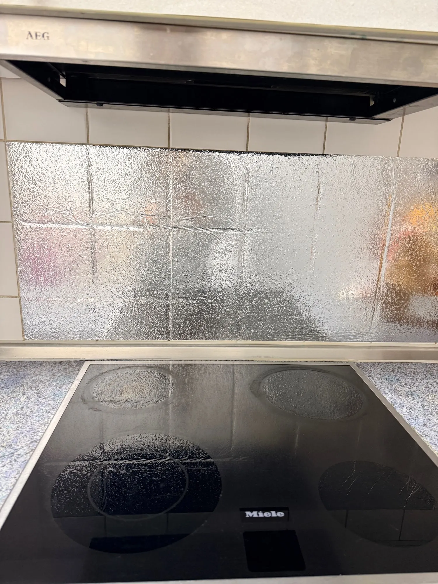 Protects kitchen walls, stoves, cabinets & shelves